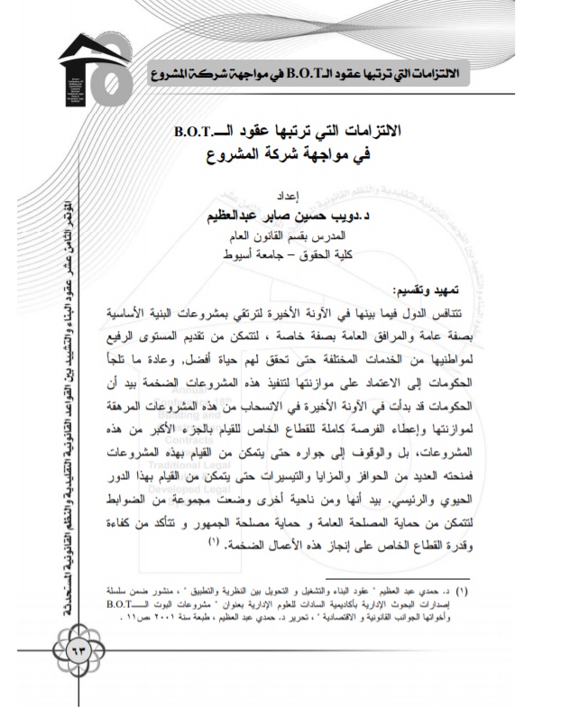 الالتزامات التي تربتها عقود B.O.T. في مواجهة شركة المشروع