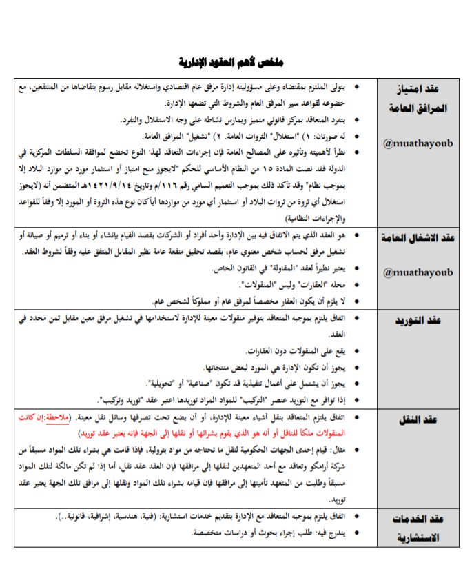 ملخص لأهم العقود الإدارية