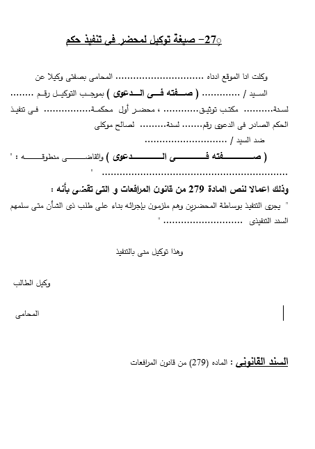 صيغه-توكيل لمحضر فى تنفيذ حكم